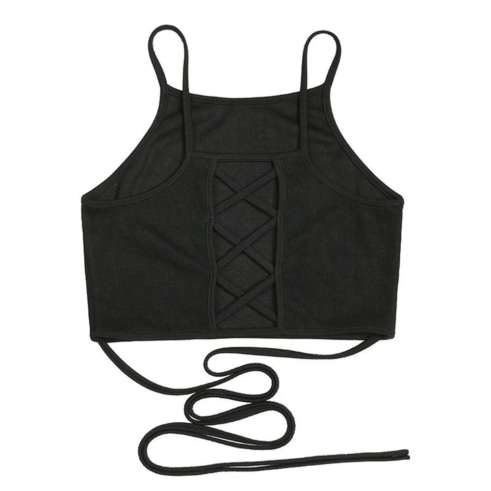 Best Offer 2020 Cropped Vest crop top women Cross Strap Black Women Tank Top Slim Sexy Small Vest Suspenders Bandage Womens Vest Crop Top