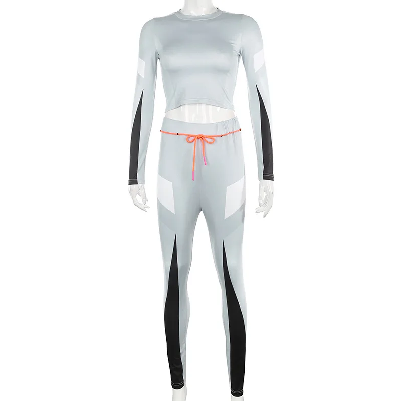 New Simenual Sporty Workout Active Wear 2 Piece Sets Women Casual Fashion Fitness Patchwork Tracksuits Long Sleeve Top And Pants Set