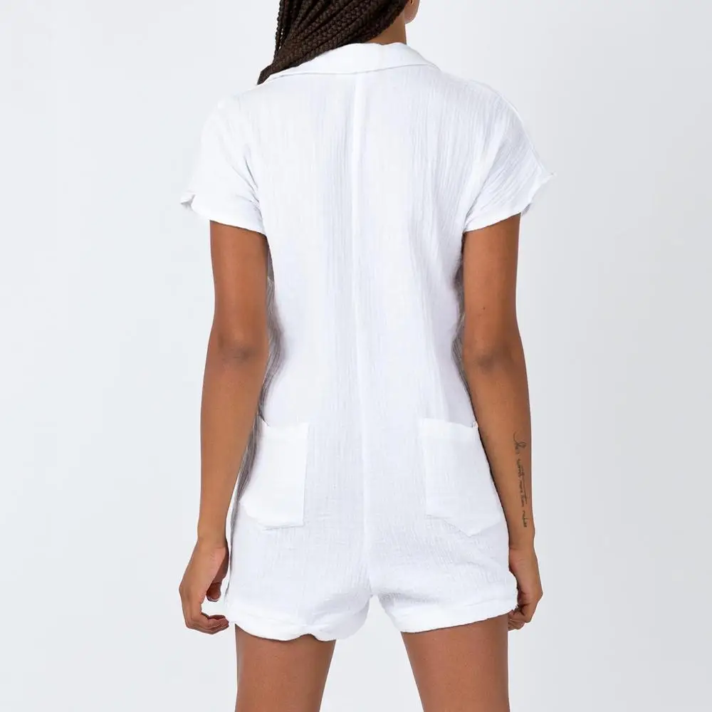New Cotton Linen Women Jumpsuit Fashion Casual Solid V-neck Ladies Short Sleeve Button Loose Playsuits Ropa Mujer 2020 Drop Shipping