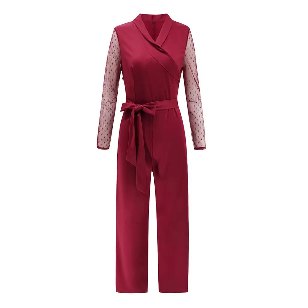 Promo Elegant Women Jumpsuit Fashion Casual Solid Color Long Sleeve V-Neck Wide Leg Spring Autumn Playsuit Overall Monos de Fiesta E