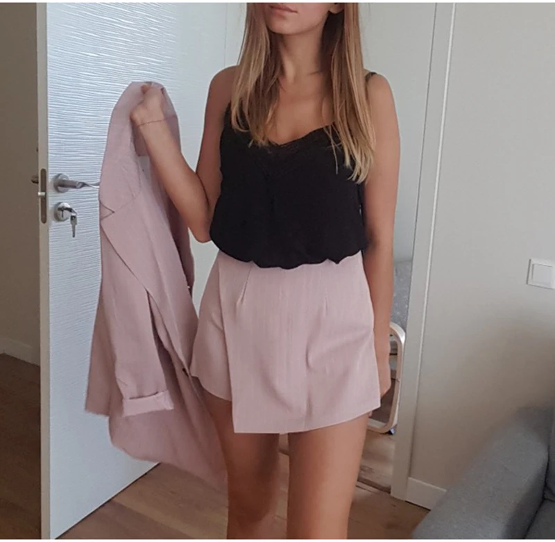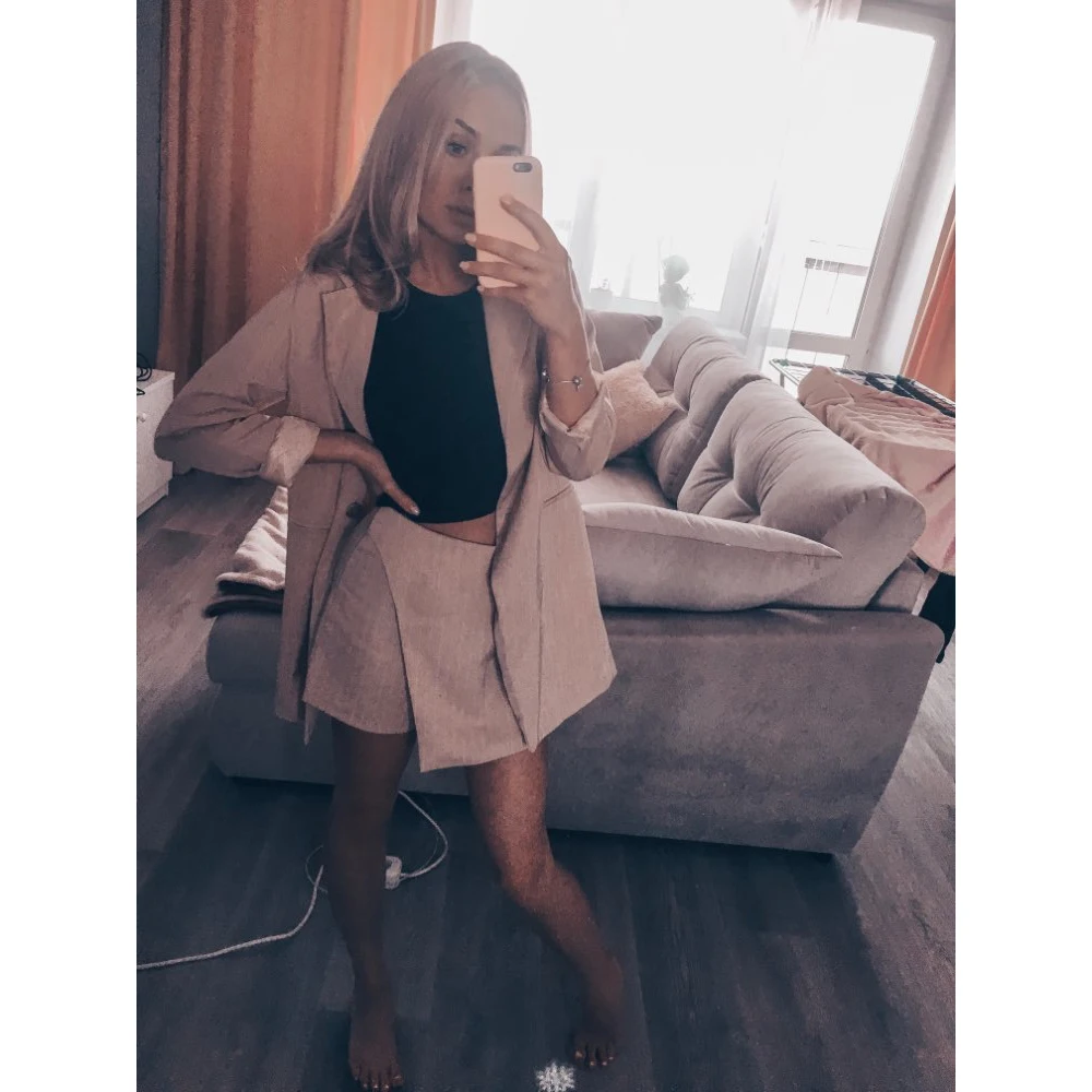 Best Offer FloyLyn Women Skirt Suits One Button Notched Striped Blazer Jackets and Slim Mini Skirts Two Pieces OL Sets Female Outfits 2020