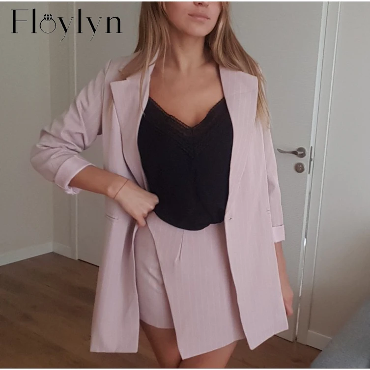 Sale FloyLyn Women Skirt Suits One Button Notched Striped Blazer Jackets and Slim Mini Skirts Two Pieces OL Sets Female Outfits 2020