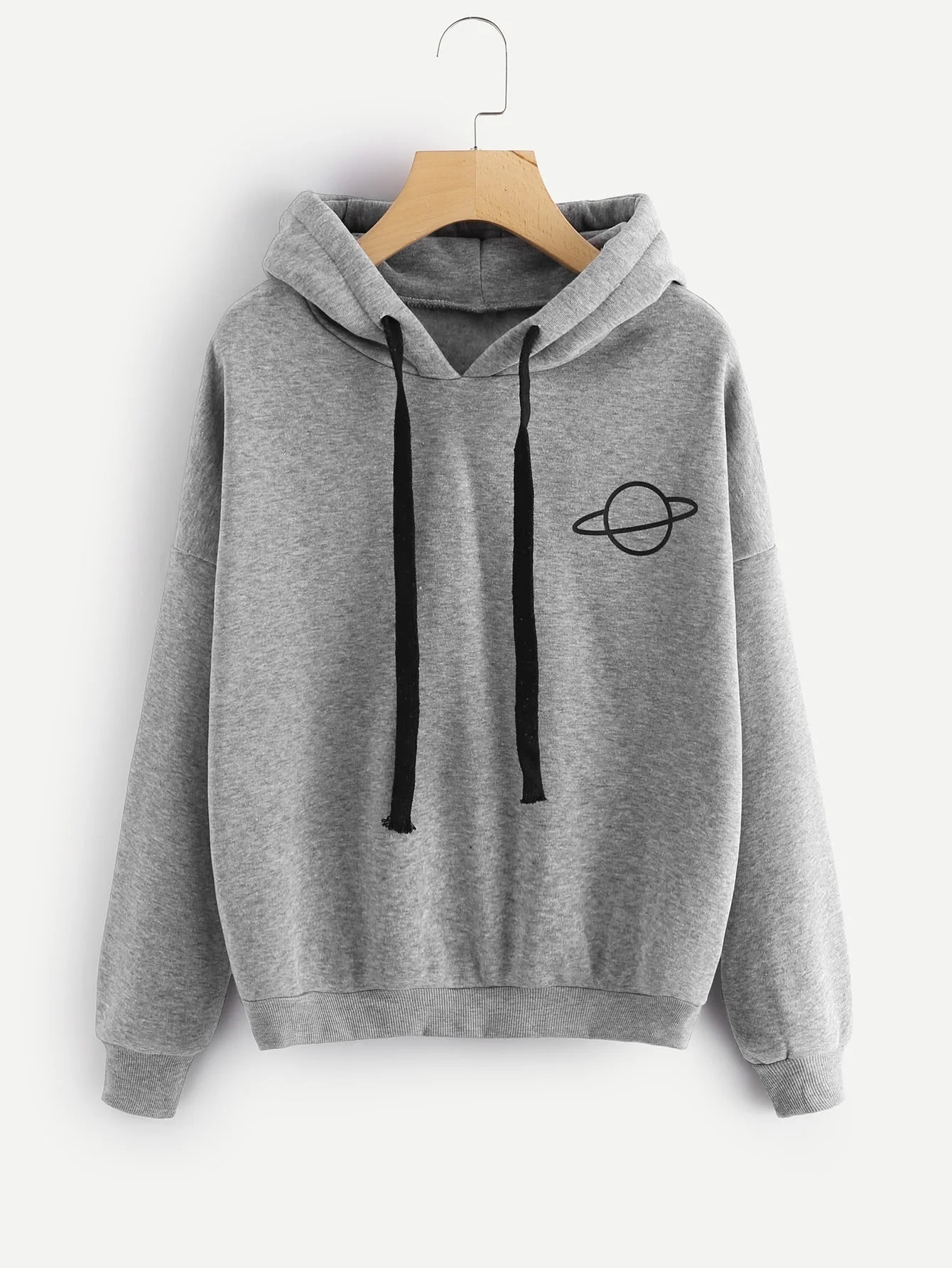 Sale MJARTORIA Women Sweatshirt Hoodies Casual Planet Print Solid Loose Drawstring Sweatshirt Fashion Long Sleeve Hooded Female Tops