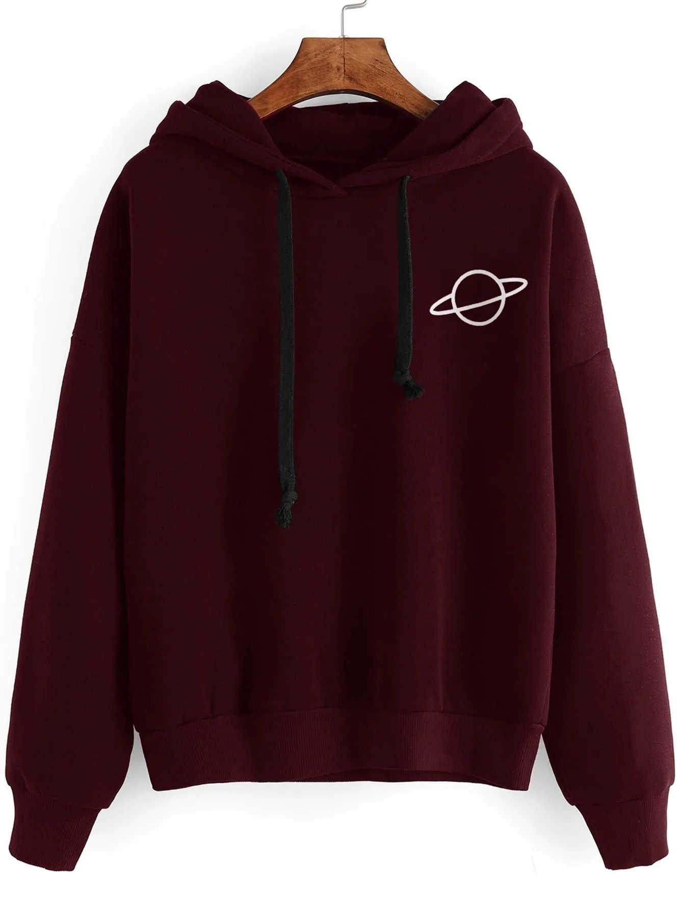 Get this MJARTORIA Women Sweatshirt Hoodies Casual Planet Print Solid Loose Drawstring Sweatshirt Fashion Long Sleeve Hooded Female Tops with limited time discount by pressing the button below