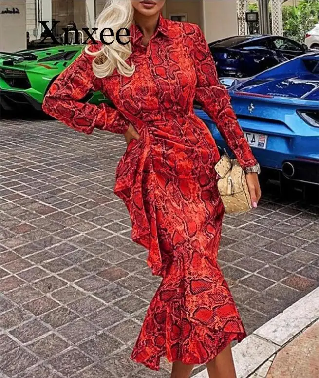 Promo 2020 trumpet 2019 Women Blouses Long Sleeve Elegant Sexy Snake pattern Print Blusas Casual Shirt Asymmetric Long Tops Plus Size